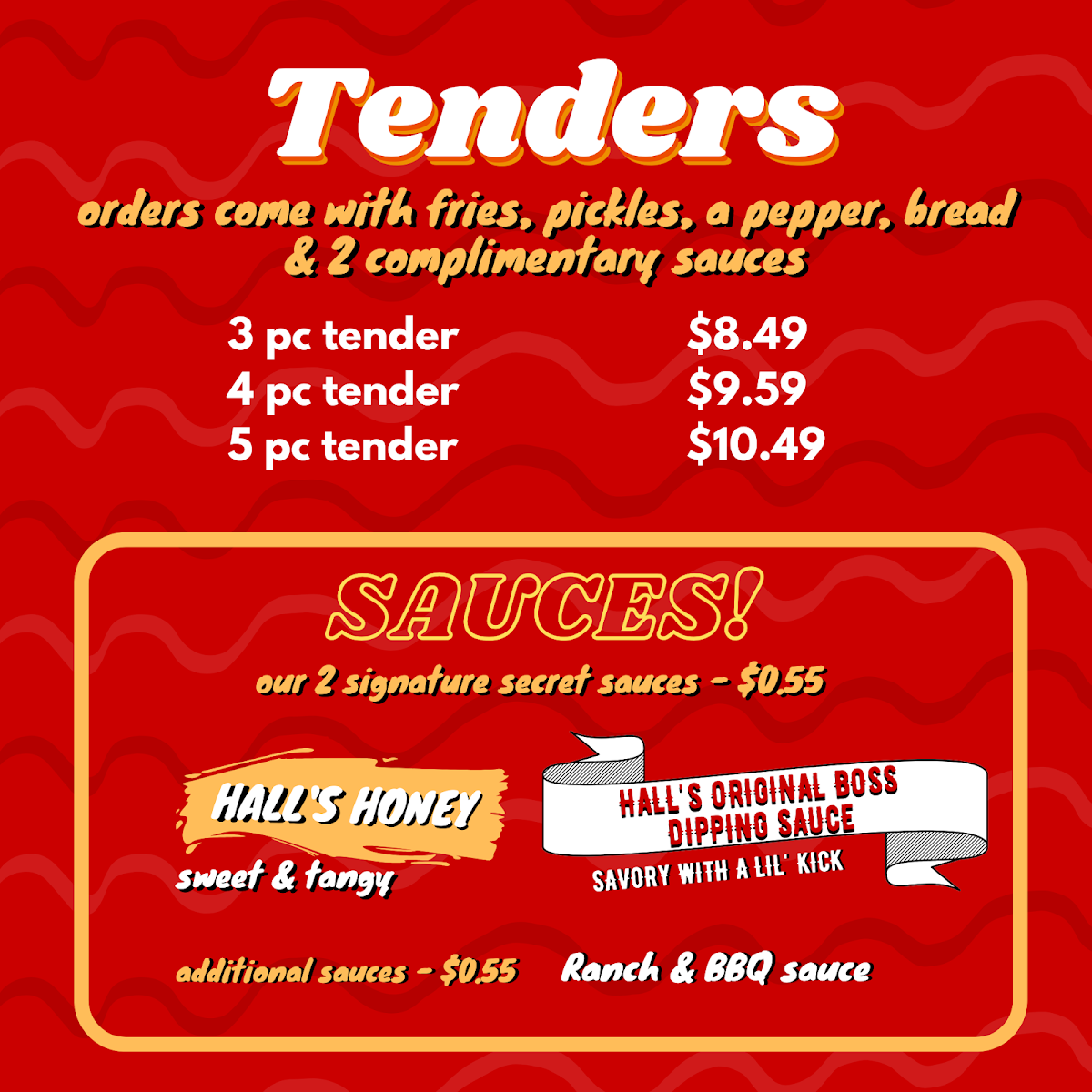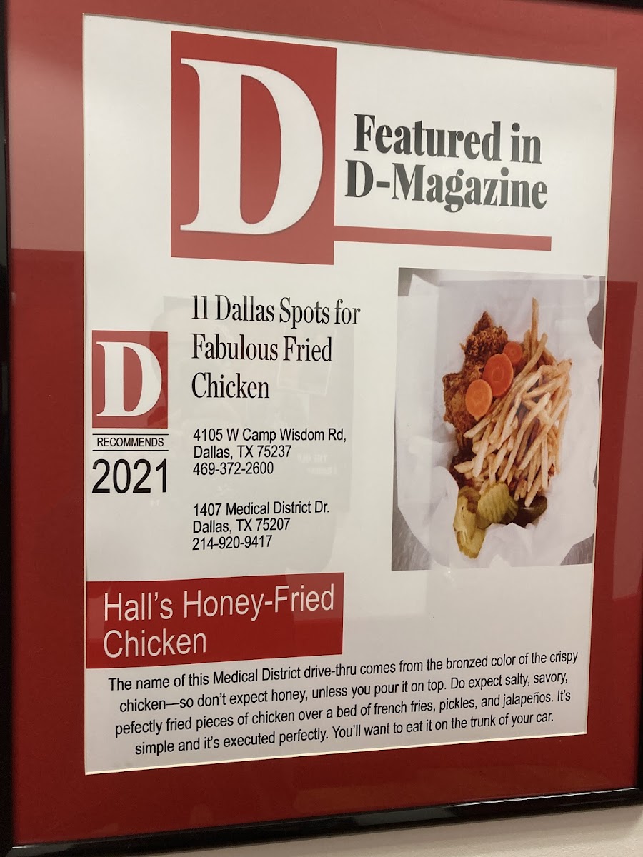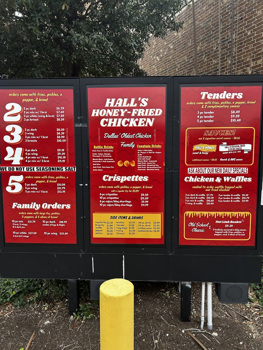 If you're craving something crispy and flavorful, look no further than Hall's Honey-Fried Chicken Menu. Located at 1800 N Interstate 35E #140 in Carrollton, TX, this spot serves up a delicious twist on your traditional fried chicken, featuring their signature honey-fried coating. Each piece is cooked to golden perfection, offering a sweet and savory crunch in every bite. The menu goes beyond just chicken, with a variety of sides and tasty options that will leave you coming back for more. Whether you're in the mood for something classic or a bit more adventurous, Hall's knows how to deliver comfort food with a sweet kick. So, next time you're near Carrollton, make sure to stop by and dig into a meal that hits all the right notes.